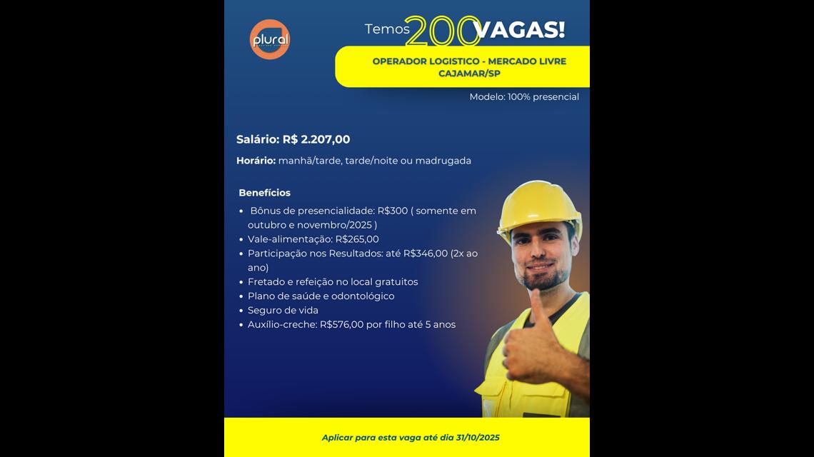 📦 VAGA: AUXILIAR LOGÍSTICO - MERCADO LIVRE